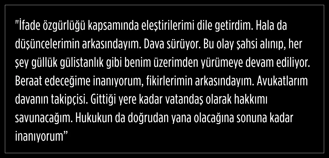 “İfade özgürlüğü kapsamında eleştirilerimi dile getirdim”