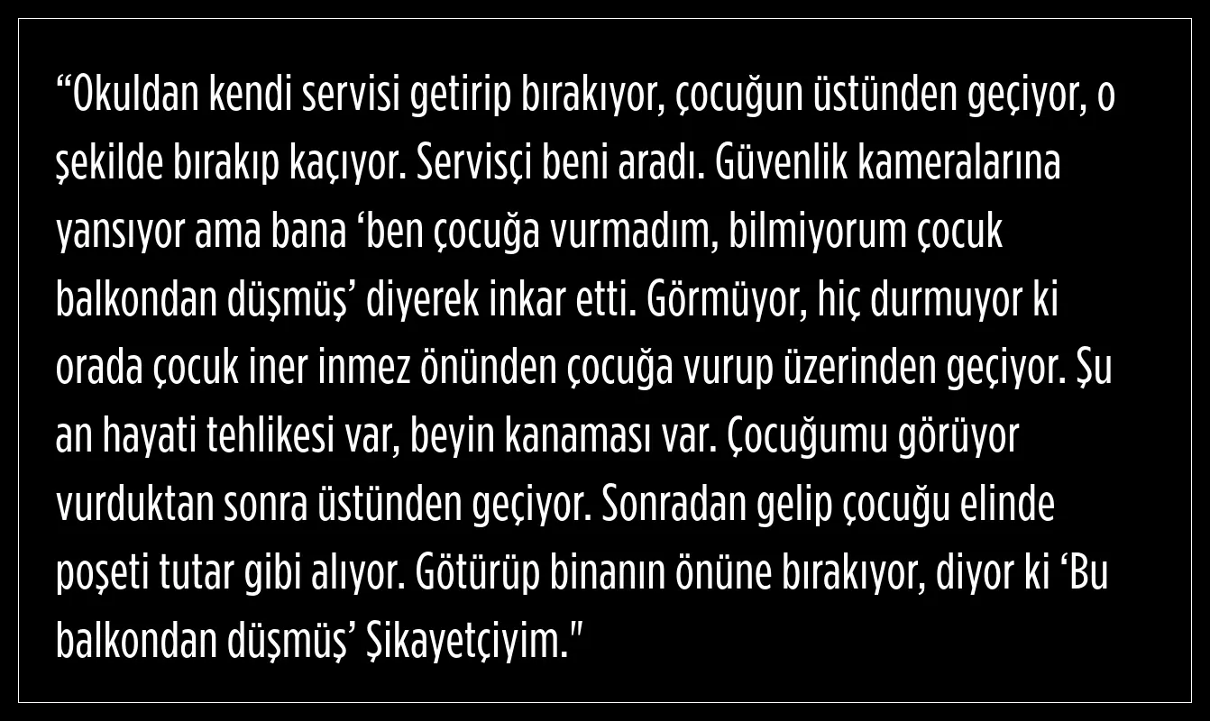 Hızla hastaneye gittiğini, eşinin de geldiğini belirten Kara, servisçinin güvenlik kamerası görüntülerine rağmen çocuğuna çarptığını inkar ettiğini söyledi.