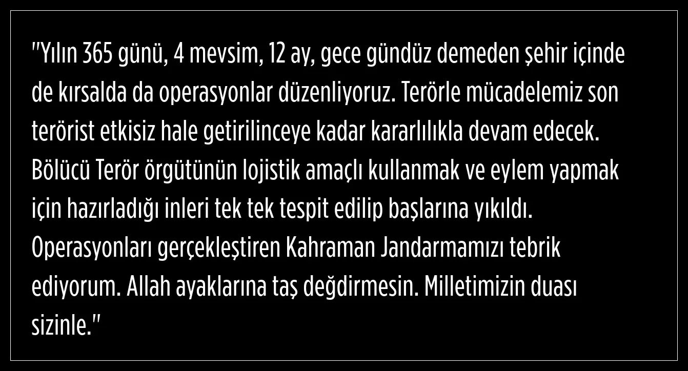 Şırnak-Merkez, Güçlükonak, Beytüşşebap, Uludere, Eruh, Pervari, Ömerli, Kızıltepe, Çatak, Hakkari-Merkez, Yüksekova, Şemdinli, Dörtyol, Belen, Lice, Ovacık, Hozat, Nazımiye, Karlıova ve Doğubayazıt kırsalında gerçekleştirilen operasyonlar sonucunda ayrıca;
