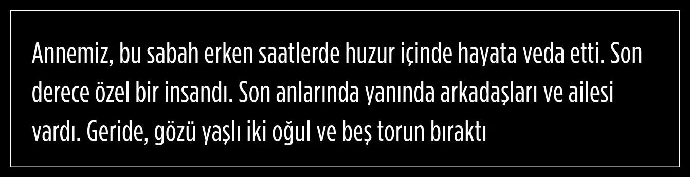 "Geride, gözü yaşlı iki oğul ve beş torun bıraktı"