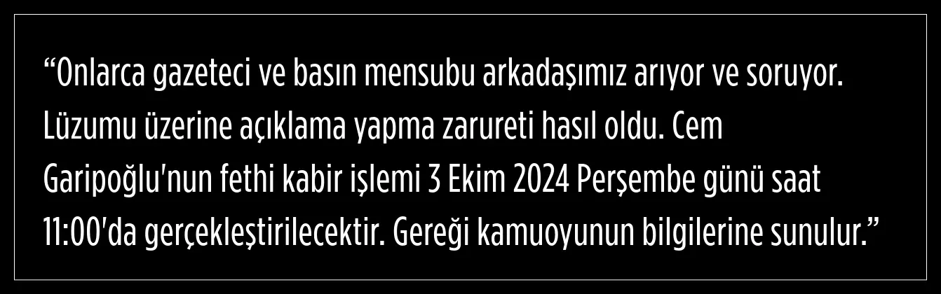 Cem Garipoğlu’nun mezarının açılmasıyla ilgili bir son dakika açıklaması geldi.