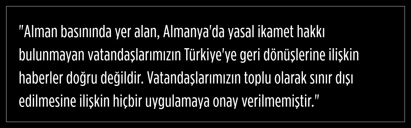 Almanya'da yasal ikamet hakkı bulunmayan Türk vatandaşlarının Türkiye'ye geri gönderileceği haberleri yalanlandı.