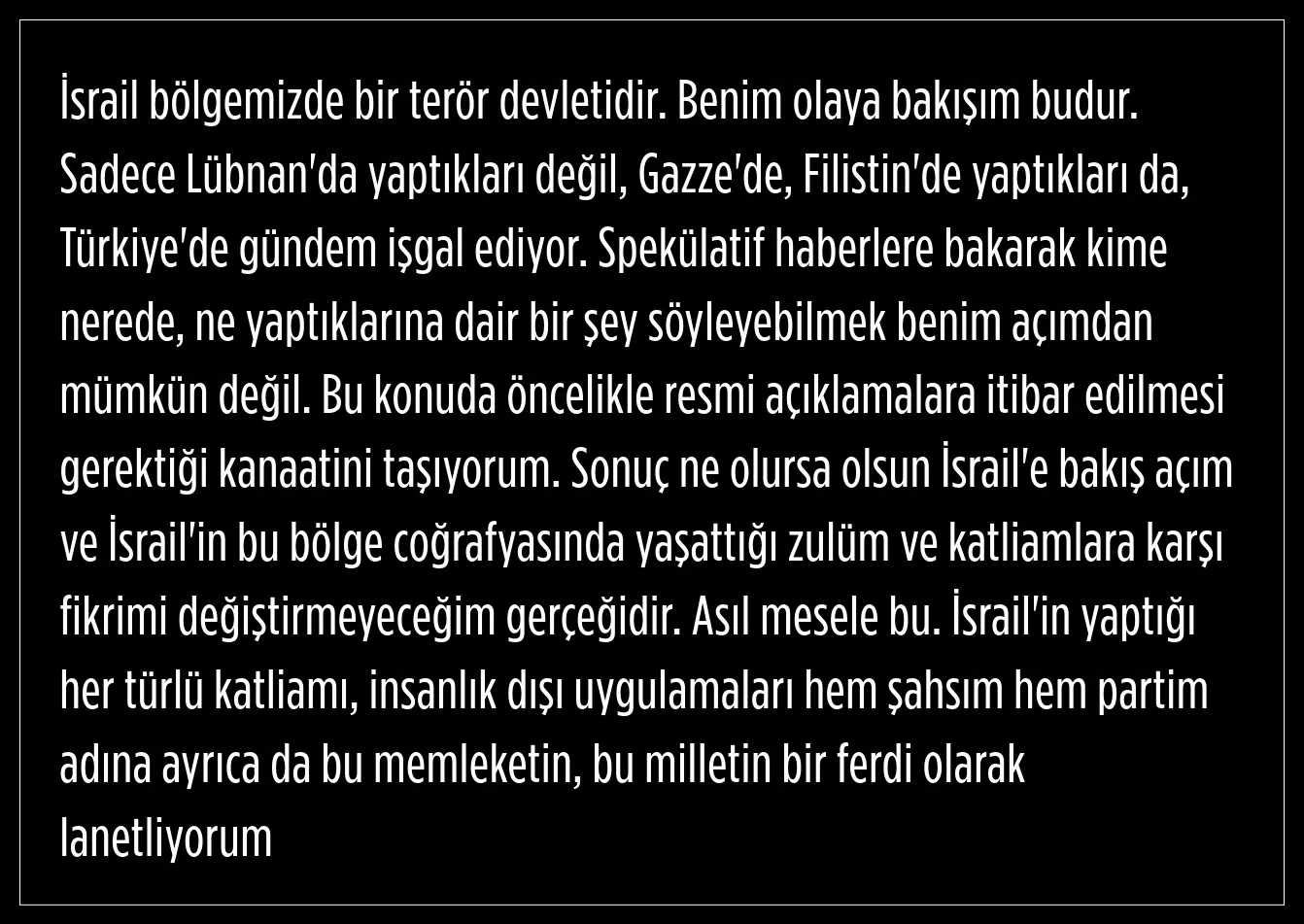 İYİ Parti Lideri, İsrail'in yaptığı her türlü katliamı, insanlık dışı uygulamaları hem şahsı hem partisi adına lanetlediğini söyledi.
