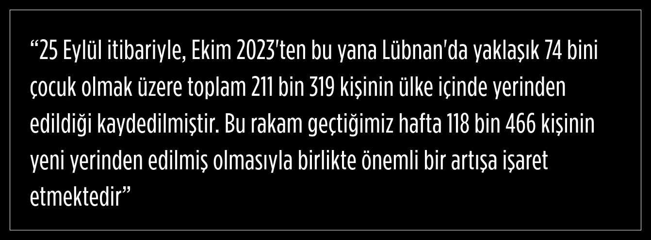 İsrail'in Gazze'deki soykırımının başladığı 7 Ekim 2023’ten bu yana ise Lübnan'da yerinden edilenlerin sayısı 211 bine çıktı.