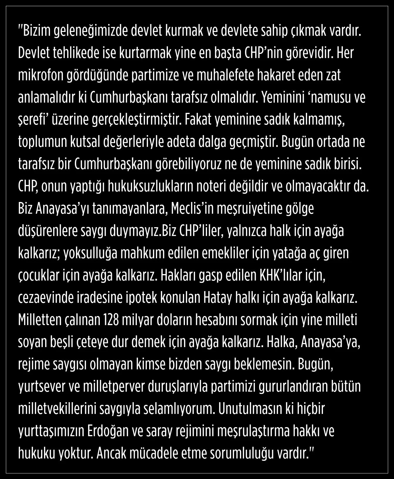 Kılıçdaroğlu TBMM Genel Kurulu’nda Cumhurbaşkanı Erdoğan salona girdiğinde ayağa kalkan CHP'lilere ''Biz CHP’liler, yalnızca halk için ayağa kalkarız'' dedi