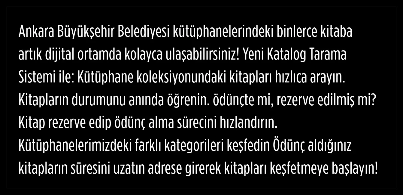 Kitapseverler, dijital kataloğa https://katalog.ankara.bel.tr/ adresi üzerinden erişebiliyor.