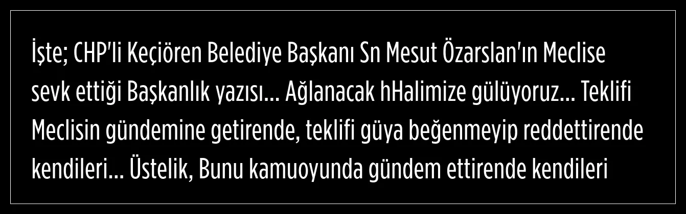 Keçiören Belediye Başkanı Mesut Özarslan, şunları söyledi;