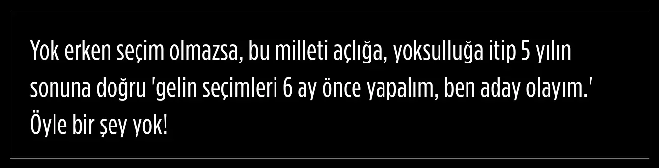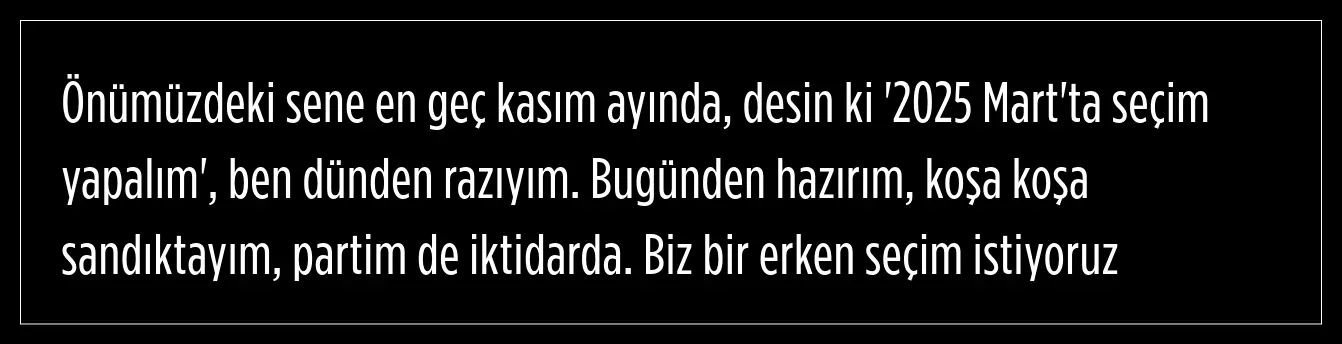 Cumhurbaşkanı Erdoğan'ın gelecek sene kadım ayında görev süresinin yarısını tamamladığını ifade eden Özel, "Eğer erken seçim olursa gelir hep birlikte milletin önüne gideriz" dedi.