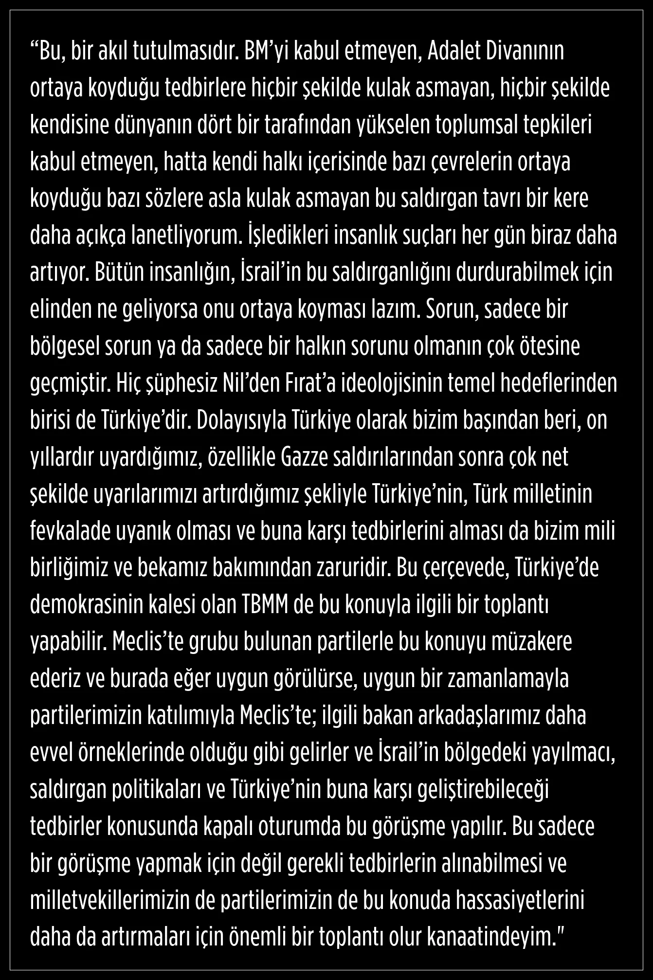 Kurtulmuş, İsrail’in bölgedeki yayılmacı politikalarının ve Türkiye’nin bu duruma karşı geliştirebileceği stratejilerin Meclis’te kapalı bir oturumda ele alınabileceğini belirtti.