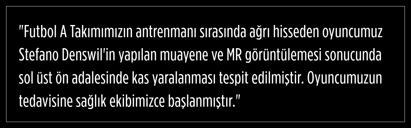 Defans oyuncusu Stefano Denswil, dünkü idmanda sakatlık geçirdi. Kulüpten şu açıklama geldi: