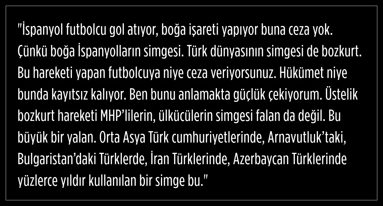 "İspanyollar boğa sevinci yapıyor, biz niye bozkurt yapamayalım?"