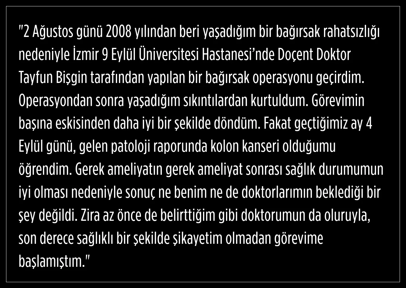 "4 Eylül günü kolon kanseri olduğumu öğrendim"