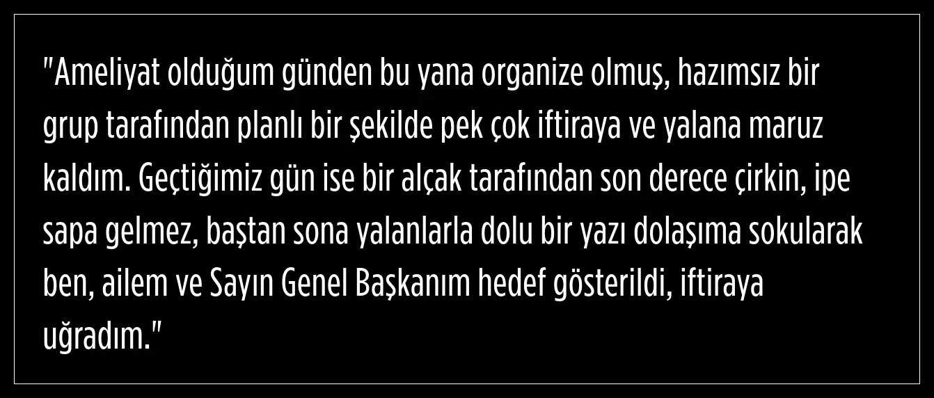 Durbay, ipe sapa gelmez baştan sona bir yalanın dolaşıma sokulduğunu belirterek kendisi, ailesi genel başkanın iftiraya uğradığını dile getirdi.