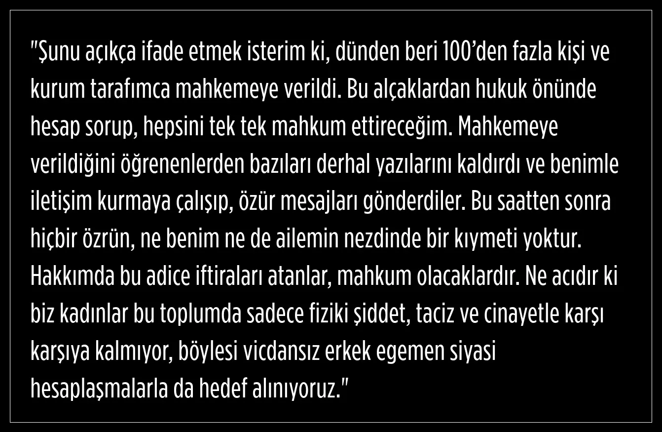 Yüzlerce kişiyi mahkemeye verdiğini duyuran Durbay, bu saatten sonra hiç bir özrü kabul etmediğini ve bu iftirayı atanların mahkum olacağını bildirdi.