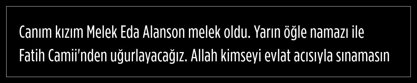 Eda Alanson, bugün son yolculuğuna uğurlandı.