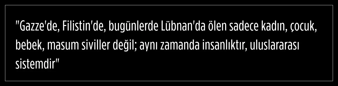 Türkiye'nin bu duruma kayıtsız kalmayacağını ifade eden Erdoğan, bedeli ne olursa olsun İsrail hükümetinin karşısında durmaya devam edeceklerini söyledi. Cumhurbaşkanı, dünyayı da Türkiye'nin bu "onurlu duruşuna" katılmaya çağırarak, uluslararası kamuoyunun sessiz kalmaması gerektiğini belirtti.