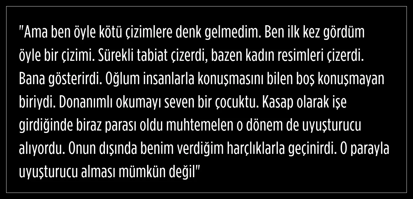 Oğlunun odasında sürekli resim çzdiğini anlatan anne Çelik, ancak genelde tabiat ve kadın resimleri çizdiğini, cinayet sonrası çıkan türde resimleri görmediğini söyledi.