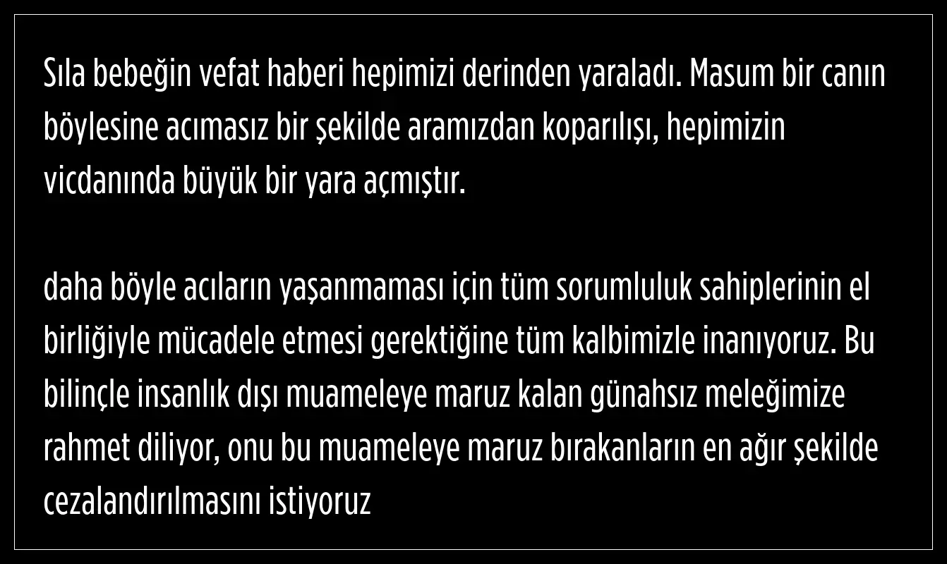 "Sıla bebeğin vefat haberi hepimizi derinden yaraladı"