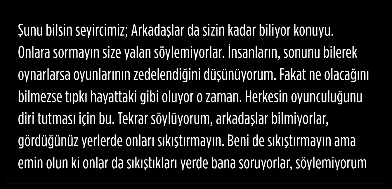 "Neler yaşanacak oyuncular bilmiyor"