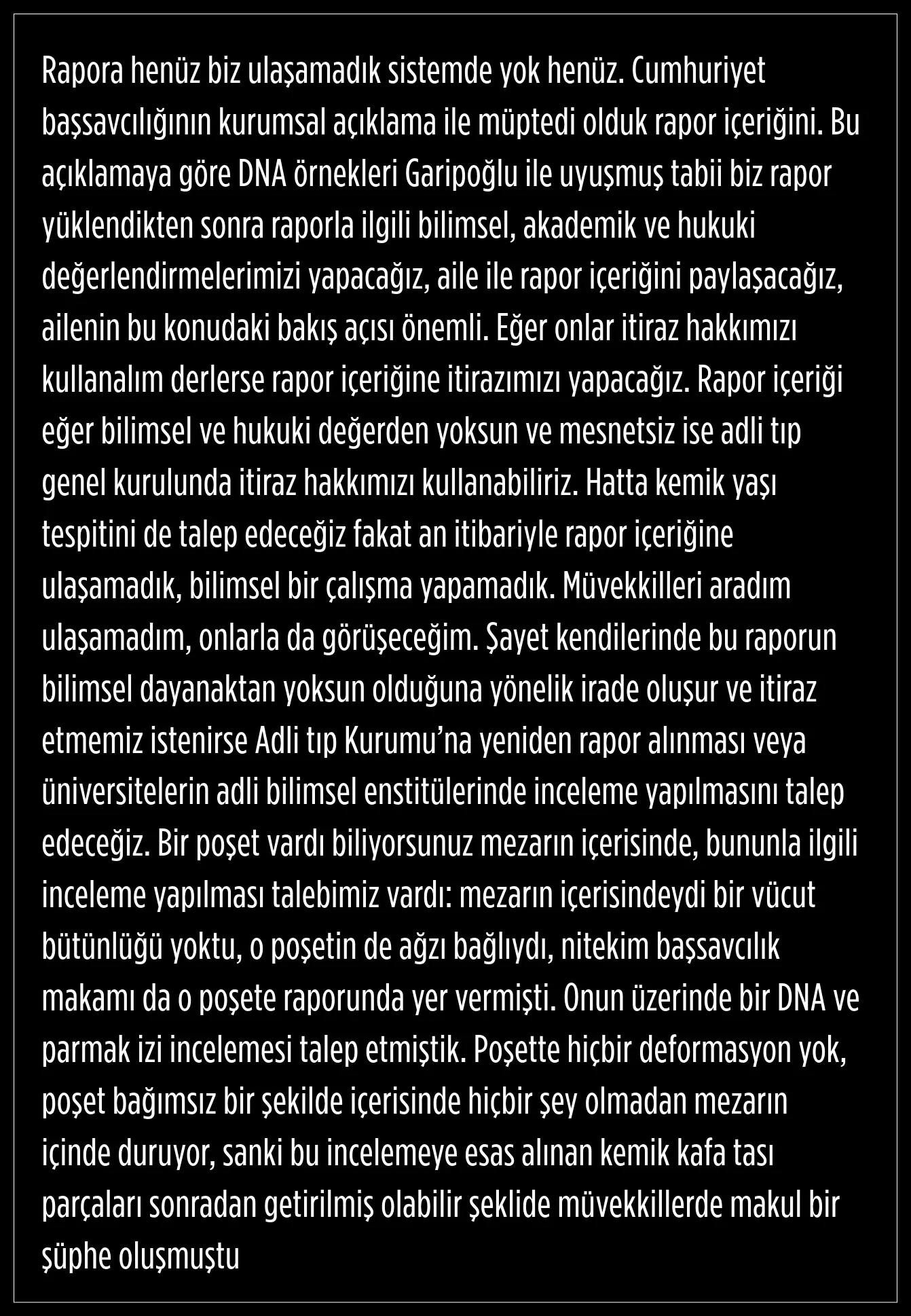 Ailenin bakış açısının önemli olduğunu ifade eden Rezan Epözdemir, onları itiraz hakkını kullanmak istemesi üzerine rapor içeriğine itiraz yapacaklarını belirtti.