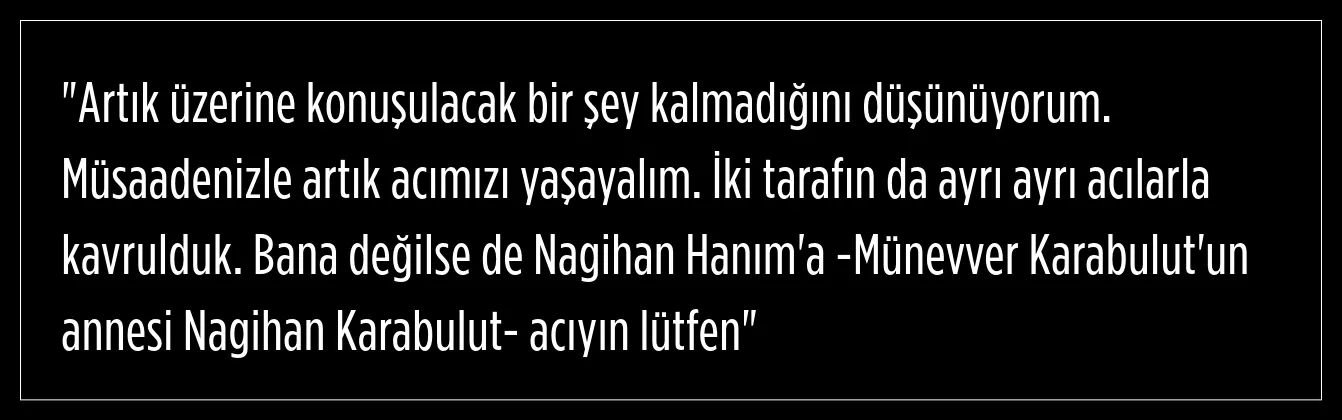 Bu 'sessizlik’ çağrısına Münevver Karabulut'un annesi Nagihan Karabulut sert yanıt verdi.