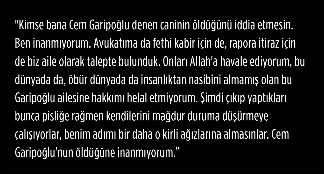 "Kimse bana Cem Garipoğlu denen caninin öldüğünü iddia etmesin”