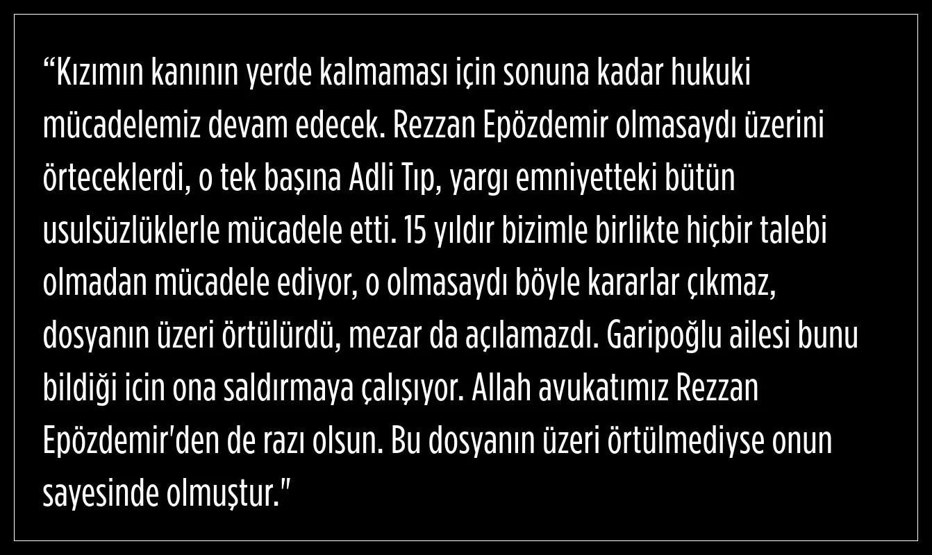 Mezardaki kalıntıların DNA örnekleri Garipoğlu aileyle uyuştu ve Cem Garipoğlu’nun öldüğü bir kere daha doğrulandı.