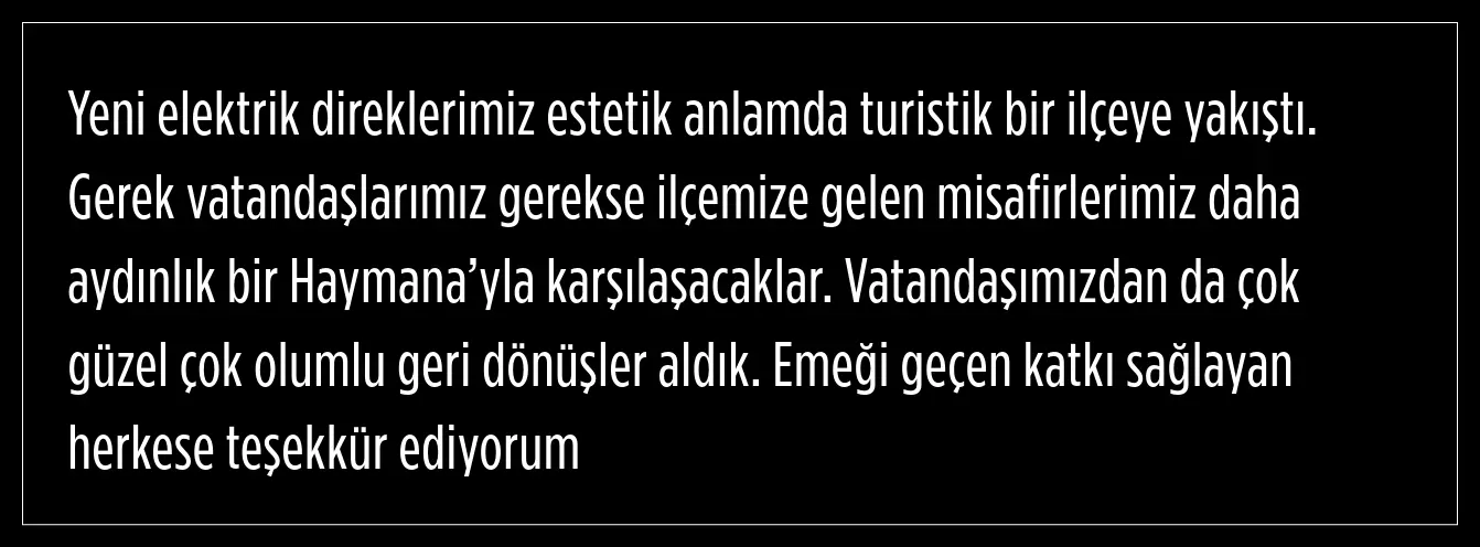 "Yeni elektrik direklerimiz estetik anlamda turistik bir ilçeye yakıştı"