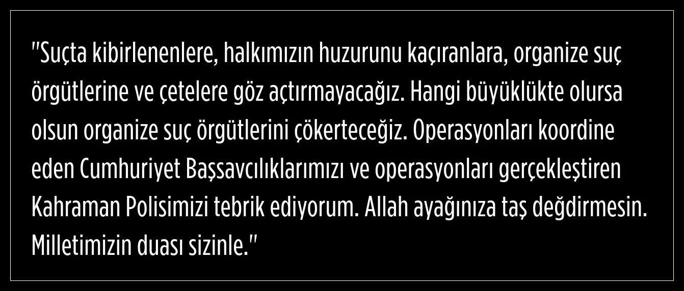 Operasyonlar sonucu; organize suç örgütü üyesi 9️5 şüpheli yakalandı.