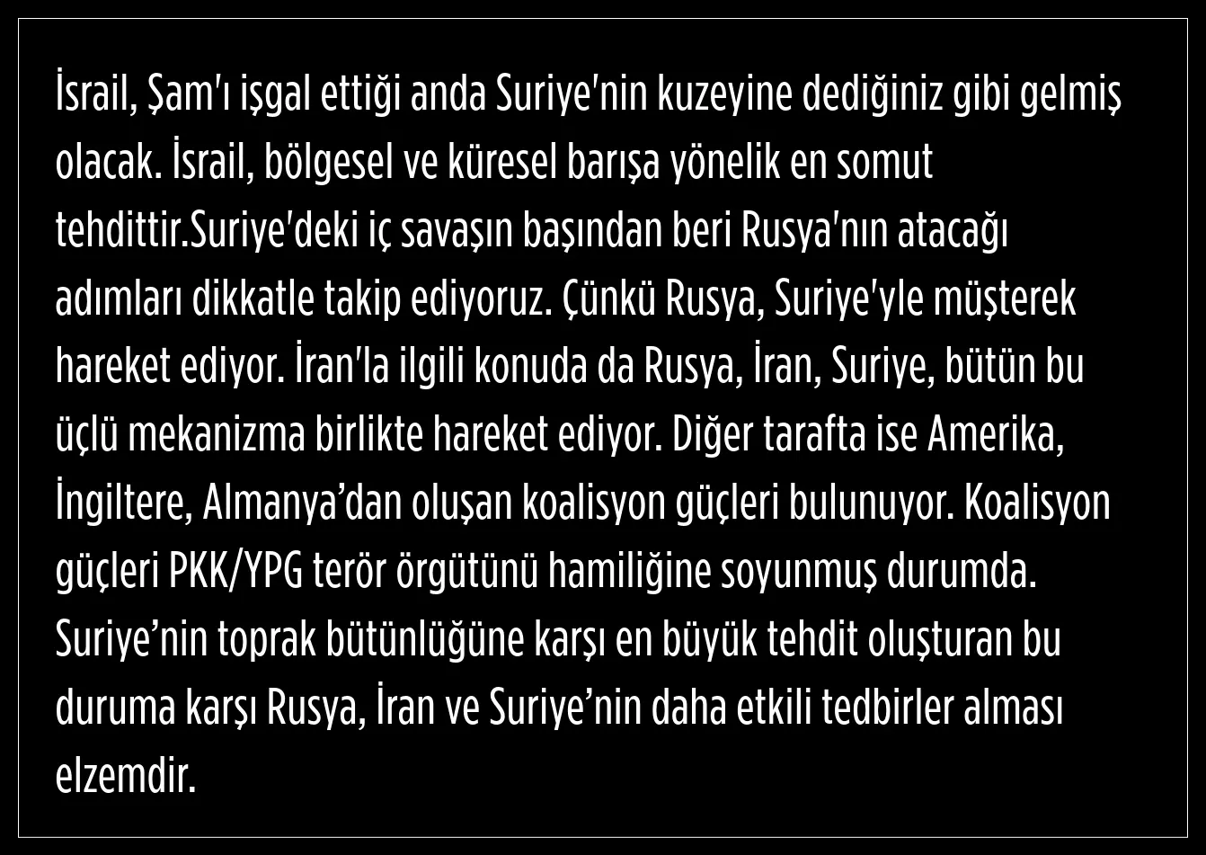 İsrail'in Suriye'yi de vurmasıyla ilgili de açıklama yapan Erdoğan sınır ötesinde yaşananlar dair Rusya'ya atıfta bulundu. Rusya'nın atacağı adımların beklendiğini dile getirdi.