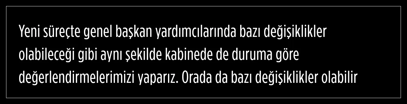Erdoğan, yeni süreçte kabine ve genel başkan yardımcılarında değişiklik yaşanabileceğini söyledi.
