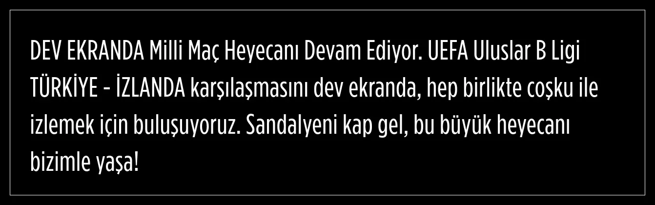 ABB, bugün oynanacak olan Türkiye- İzlanda karşılaşmasını dev ekrana taşıyacak. Başkentliler, 2 alana kurulacak dev ekrandan maçı izleyebilecek.