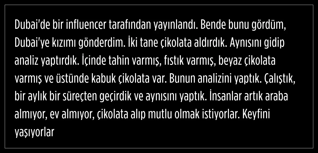 "İnsanlar artık araba almıyor, ev almıyor, çikolata alıp mutlu olmak istiyorlar"