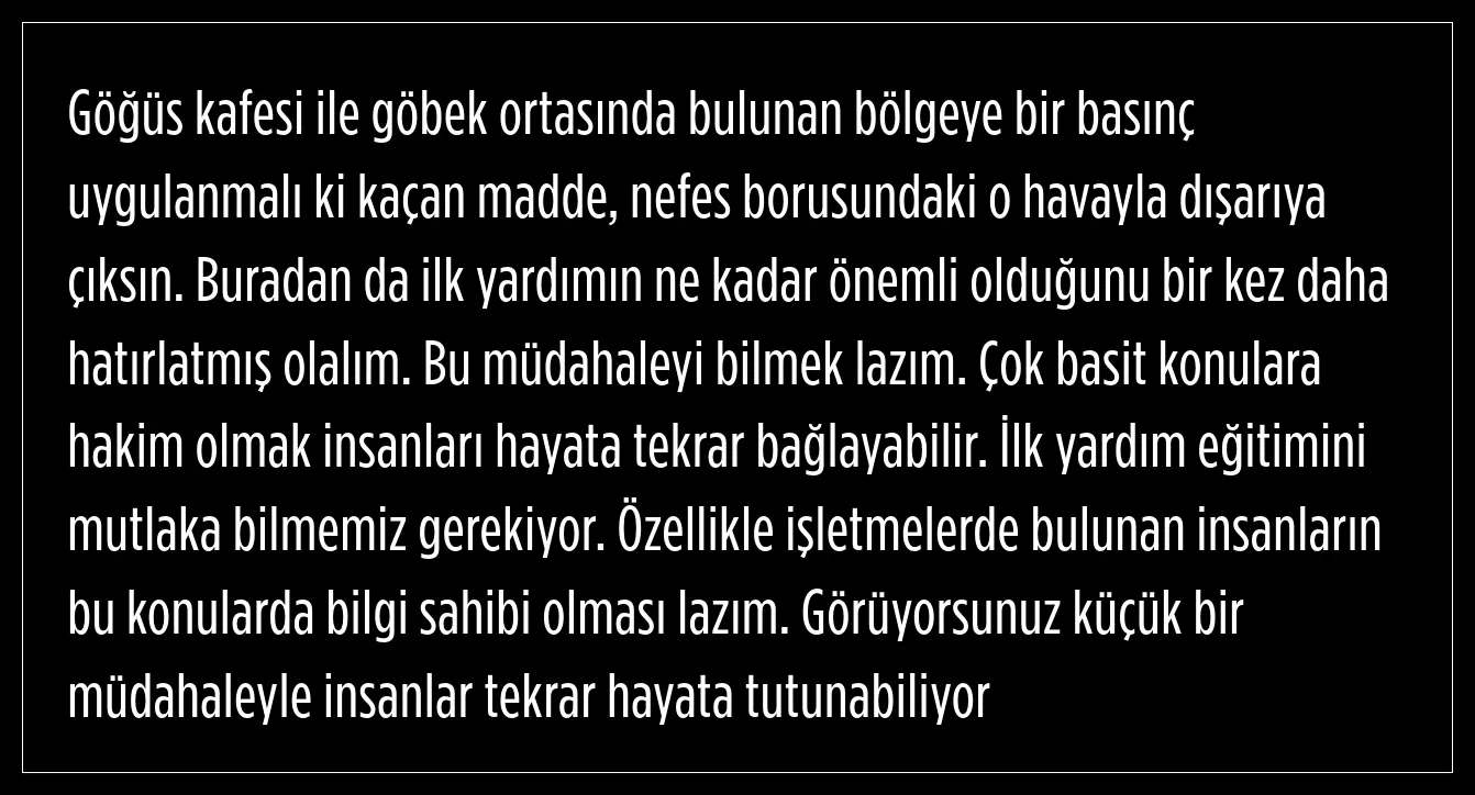 Burada önemli olanın nefes borusuna kaçan maddenin tekrar dışarıya atılımını sağlayabilmek olduğunu ifade eden Dereli, şu ifadeleri kullandı;