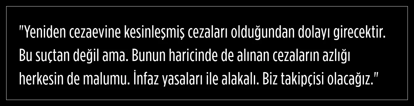 Sude Naz A.'nın avukatı Meray Eraslan, konuya dair yaptığı açıklamada, kesinleşmiş cezaları olduğu için Yılmaz Akman'ın tekrar cezaevine gireceğini ancak bu suçtan dolayı olmayacağını belirtti.