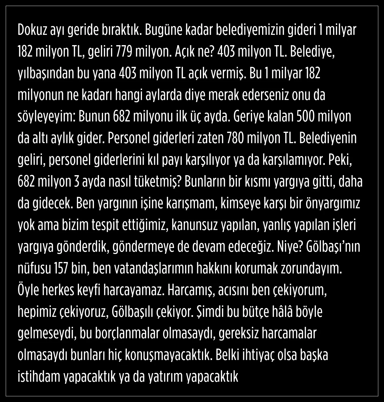 "Gölbaşı isminin de sık sık borcuyla, personel çıkışlarıyla anılması da doğru değil"