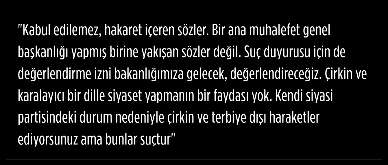 Kılıçdaroğlu hakkında hakaret davası açılmasına ilişkin konuşan Adalet Bakanı Yılmaz Tunç, hakaretin kabul edilemeyeceğini ve eski ana muhafet liderine sözlerin yakışmadığını ifade etti.