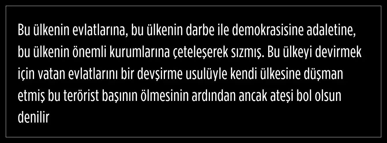 "FETÖ elebaşı terörist Fetullah Gülen'in öldüğünün haberini paylaşmaktan dolayı mutluluk duyuyorum"