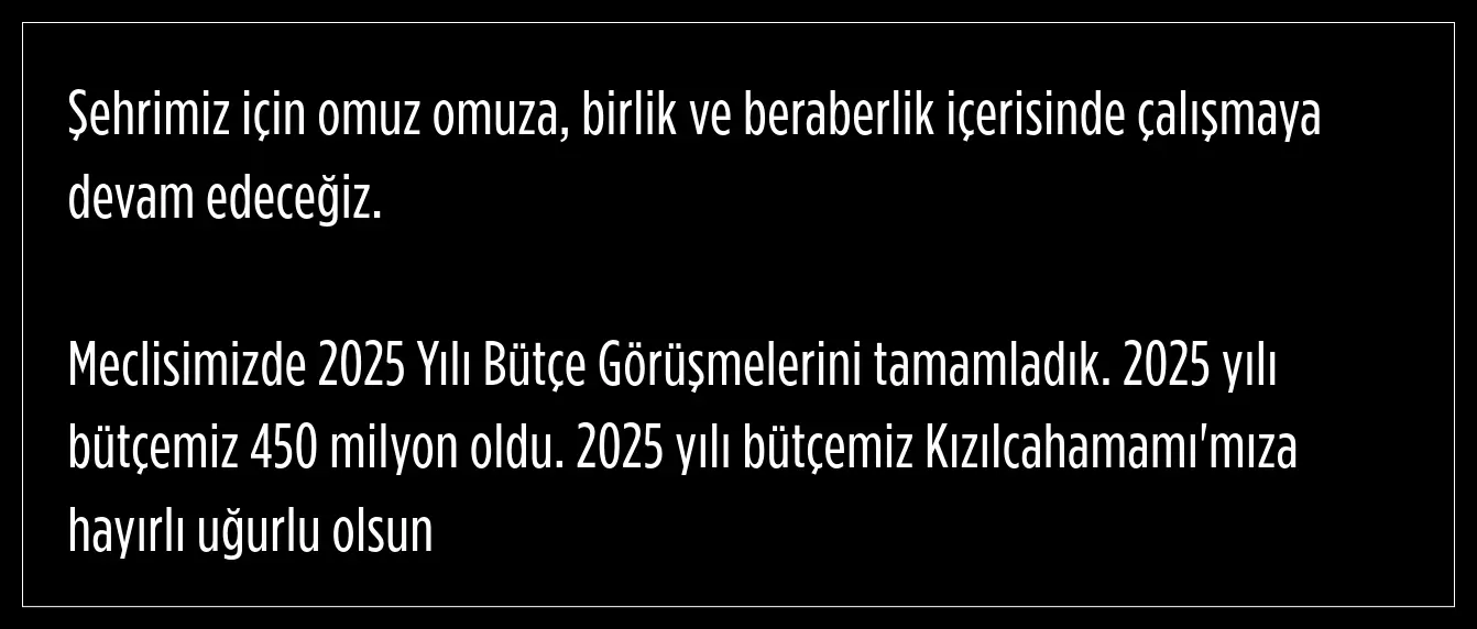 Kızılcahamam Belediye Başkanı Süleyman Acar, sosyal medya hesabı üzerinden bütçeye ilişkin paylaşımda bulundu.