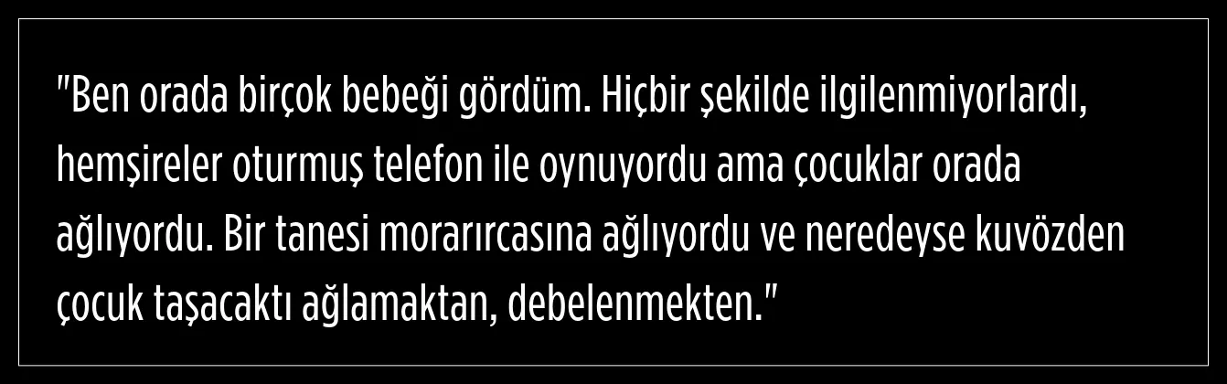 Kucağına aldığında çocuğunun kendisini açlıktan tırmaladığını kaydeden Ayşe K., bunun üzerine hemen emzirmeye başladığını söyledi. Ayşe K., henüz emme refleksi gelişmemiş olması gereken prematüre bebeğin buna rağmen kendisini direkt emmeye başladığını anlattı.