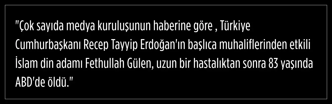Fetullah Gülen'in ABD'deki (Amerika Birleşik Devletleri) ölümüne dair ayrıntılara yer verilen haberde, şu ifadeler kullanıldı:
