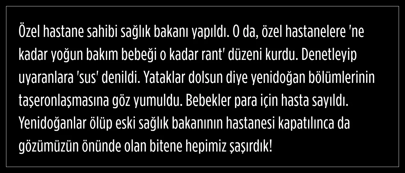 "Ne kadar yoğun bakım bebeği o kadar rant"