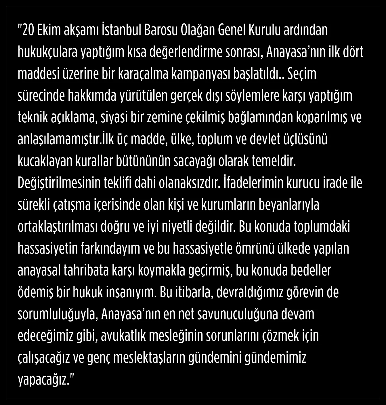 İstanbul Barosu Başkanı İbrahim Kaboğlu, baro seçiminin ardından söylediği sözlere dair açıklama yaptı.