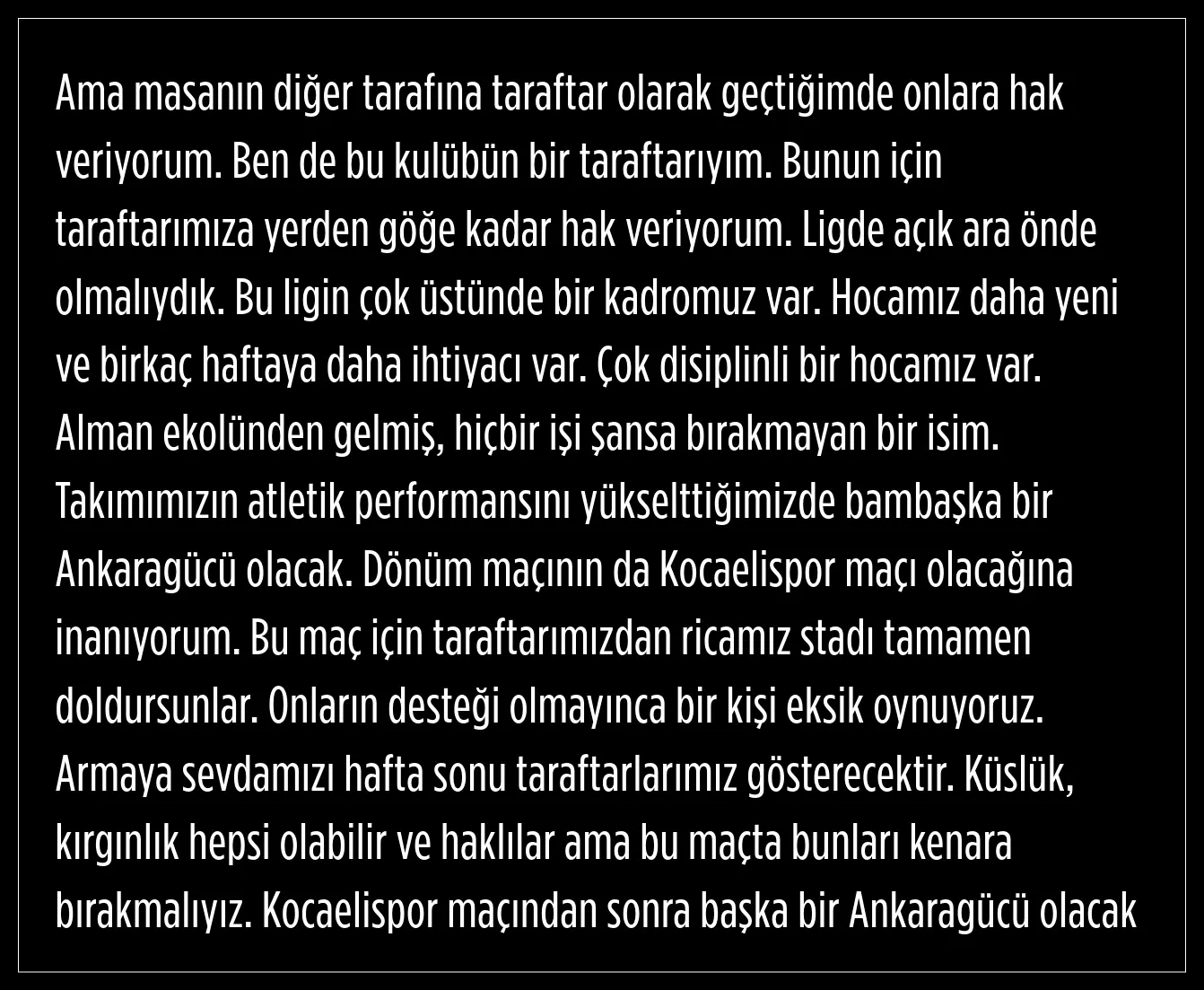 "Kocaelispor maçından sonra başka bir Ankaragücü olacak"