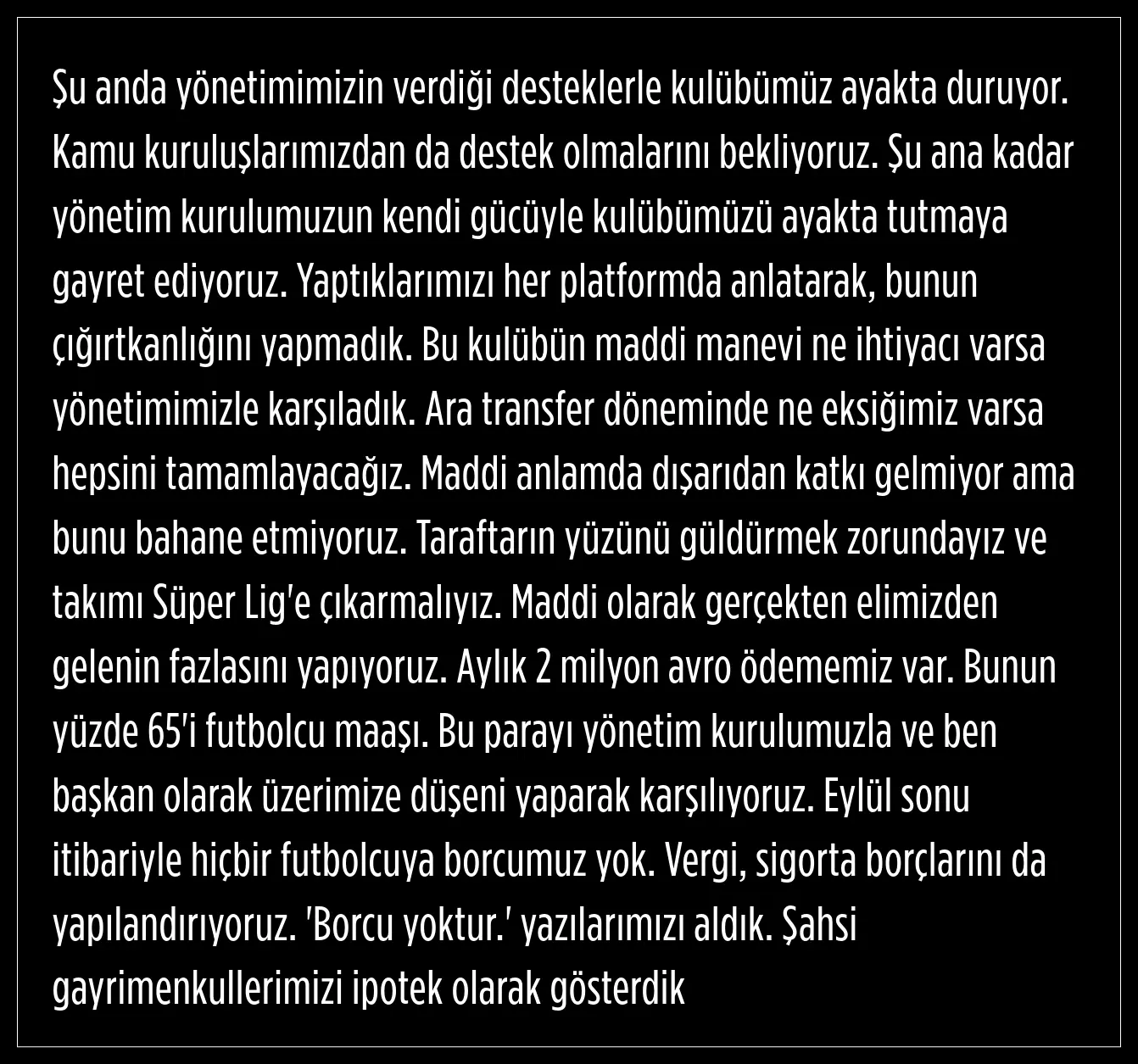 Taraftarın, kazandıkları maçların ardından bile yönetimi istifaya çağırdıklarını, tezahürat yaptıklarını dile getiren Fırat, şu ifadeleri kullandı;