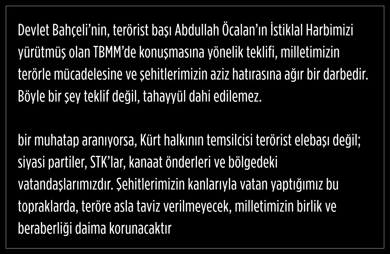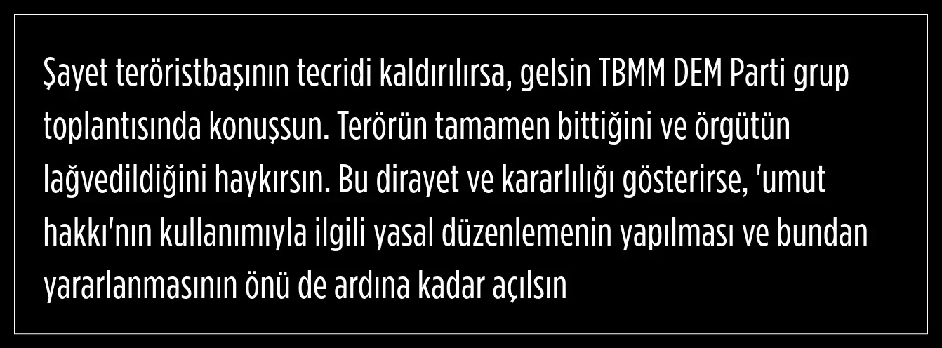 Bahçeli, bir çağrı yaparak, Öcalan için "umut hakkı" çıkışında bulundu.