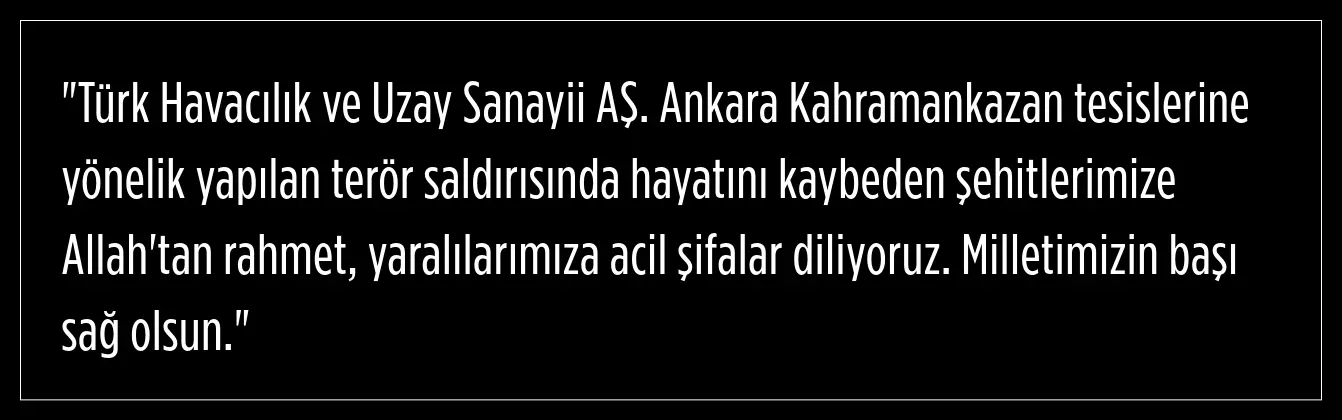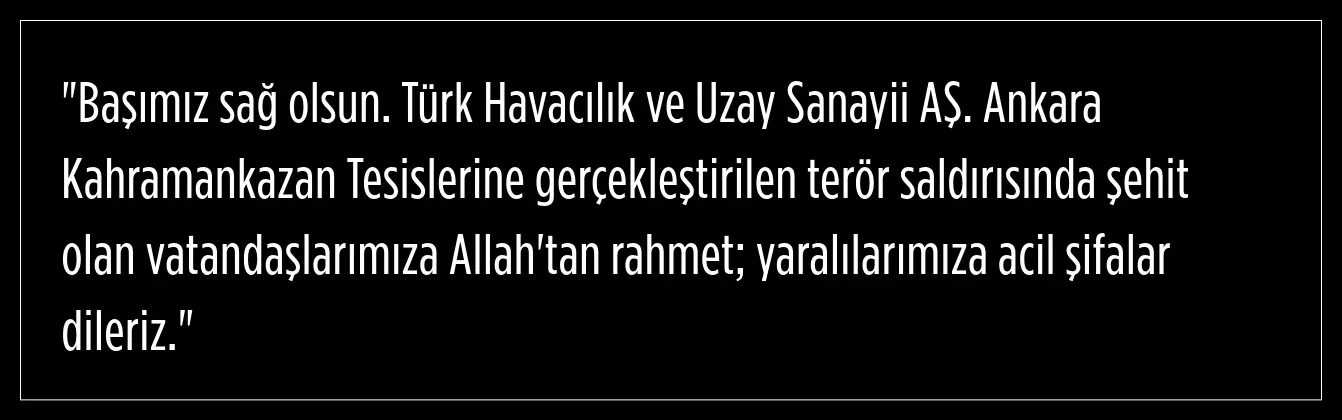 Ankara'nın Kahramankazan ilçesindeki TUSAŞ (Türk Havacılık ve Uzay Sanayii A.Ş) tesislerine yönelik bombalı ve otomatik silahlı terör saldırısı gerçekleştirildi.