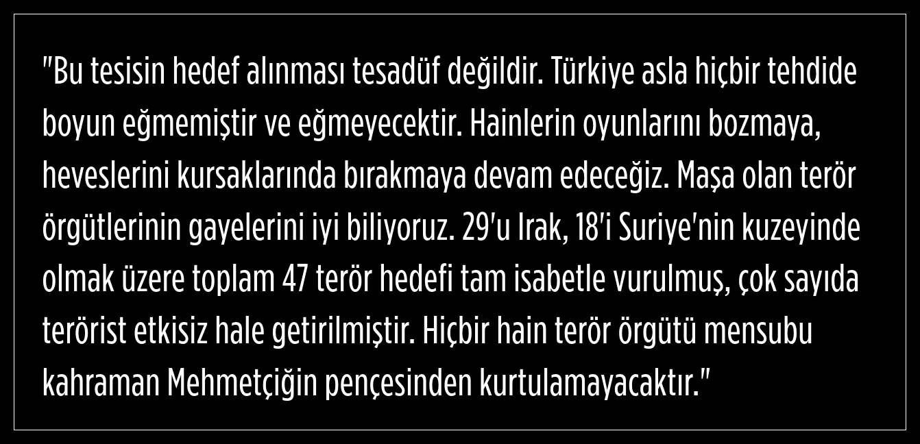 Milli Savunma Bakanı Yaşar Güler, TUSAŞ saldırısı ile ilgili şunları söyledi: