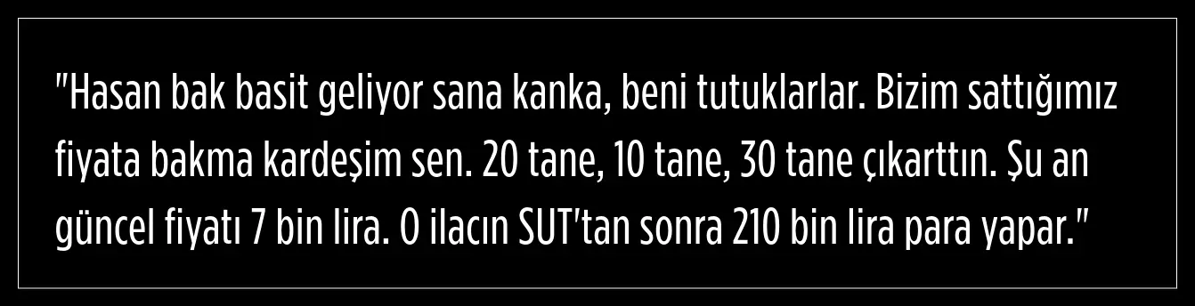 Bunun üzerine Hasan Basri Gök ile Hakan Doğukan Taşçı'nın, hastanelerden çalıp sattıkları ilaçların yüzdelik paylarını ve ne kadar kazanacaklarını hesapladıkları fark edildi.