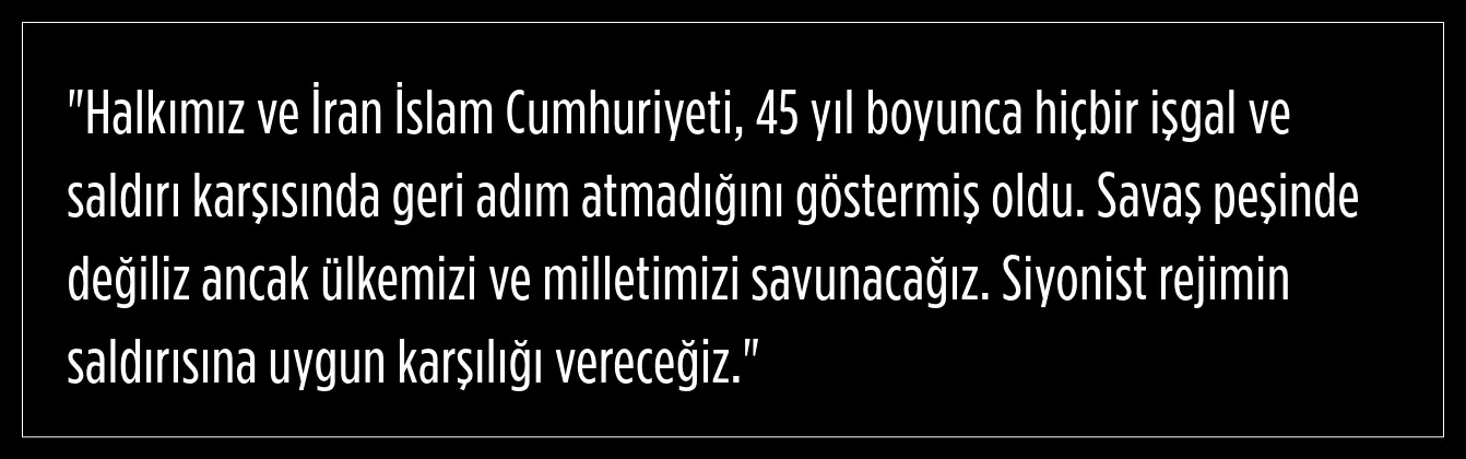 İran halkının ve İran İslam Cumhuriyeti'nin 45 senedir hiçbir saldırı ve işgale karşı geri adım atmadığını dile getiren Pezeşkiyan, savaş peşinde olunmadığını ama İran'ın ve İranlılarının savunulacağını aktardı.